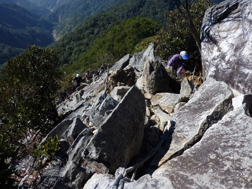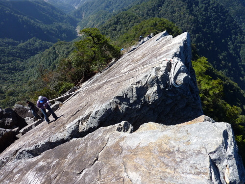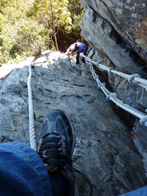 的垂降岩壁,但不同的是比五寮尖的長得多,但是不會滑,沒那麼心驚膽跳。