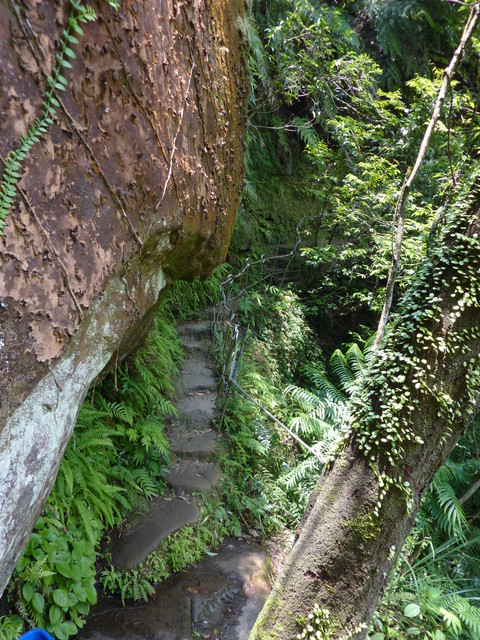 小徑沿著山邊蜿蜒而上,偶有山泉從岩壁滲出,