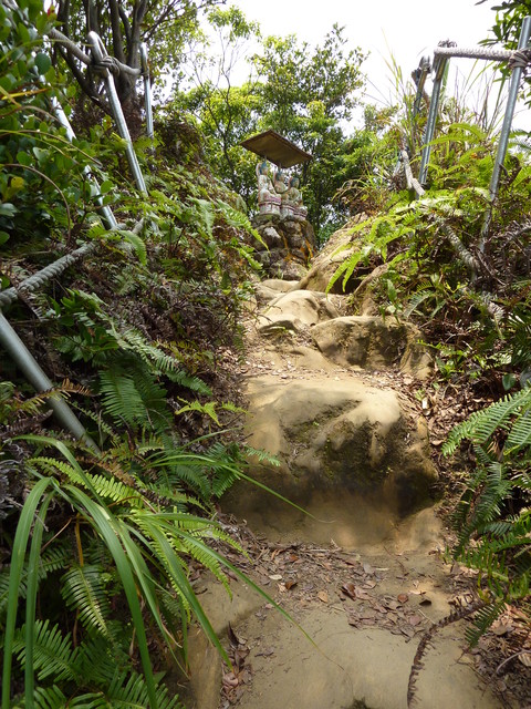 過了雲霄飛車石階,很快就可以上到山頂,無基點,立著莊嚴的三聖佛,