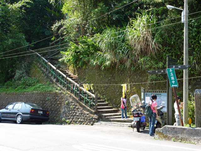 進入登山口沒多久就遇到一間民宅,往左去九龍山.石燭尖,往上走石階則通往孝子山.慈母峰.中央尖.東勢格越嶺古道,