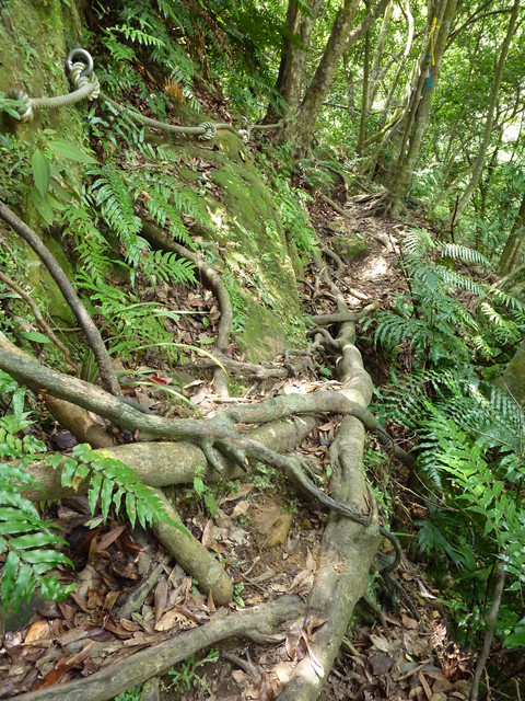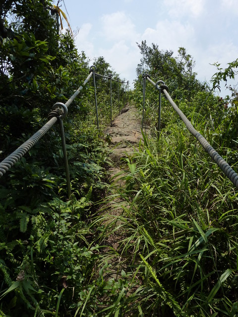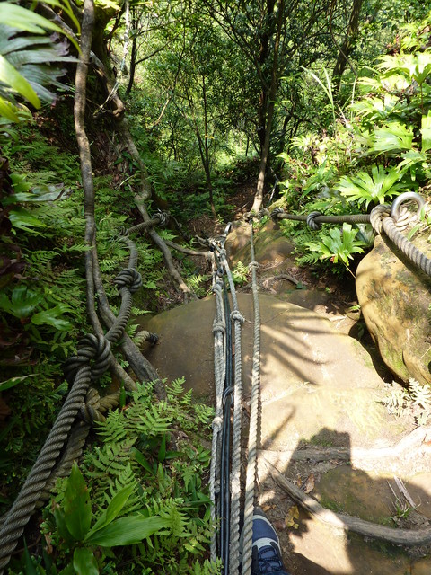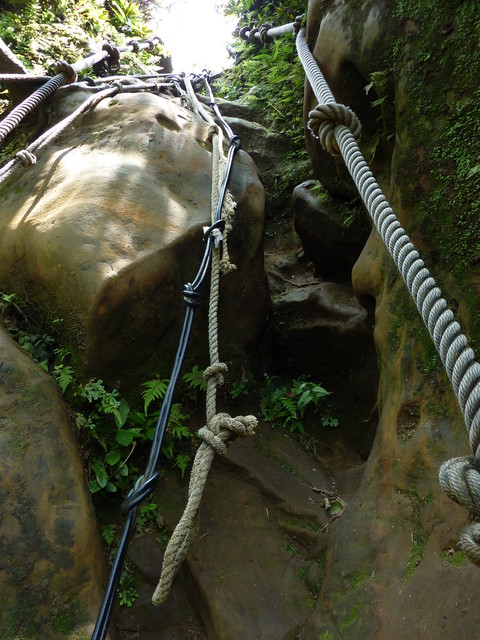 慈母嶺必須攀繩而上,雖然高度不高,但不小心可能會跌落山谷,還是要一步一步踩穩.