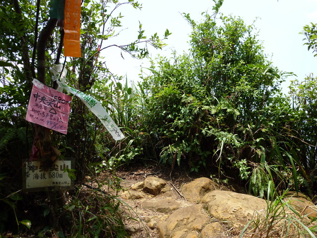 上了大崖壁,往左走就是中央尖頂點,海拔580公尺,無基點.花了2.5小時攻頂
