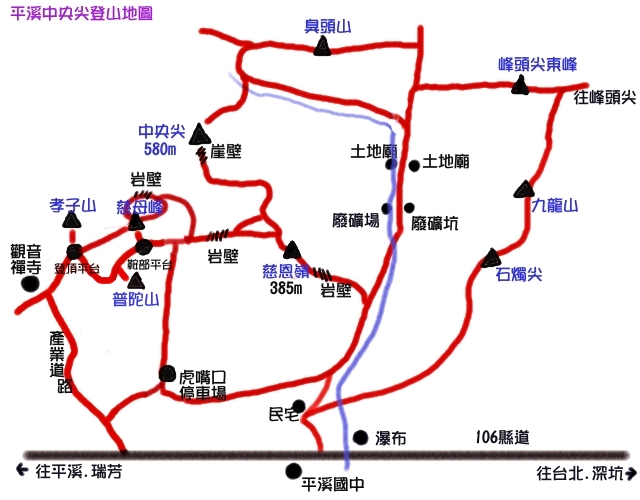 從北宜高下石碇交流道,由106縣道往平溪方向,過菁桐到平溪國中,大門對面就是登山口了,
