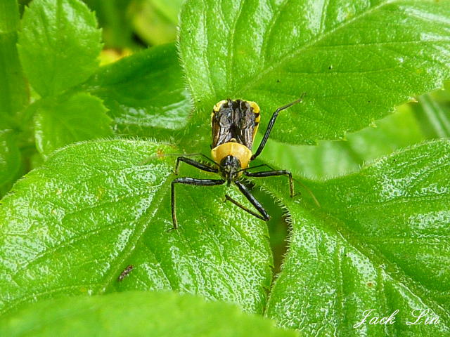 英勇反擊的黃壯獵椿象,失去了一條腿