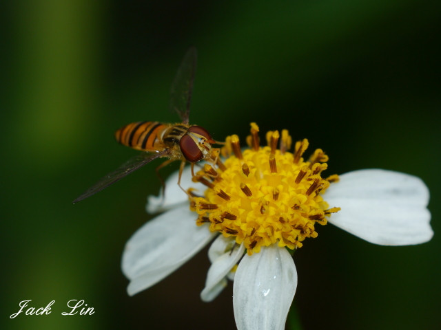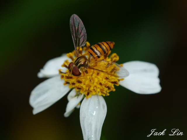 細看之下才發現這是一種蠅類-細扁食蚜蠅。
