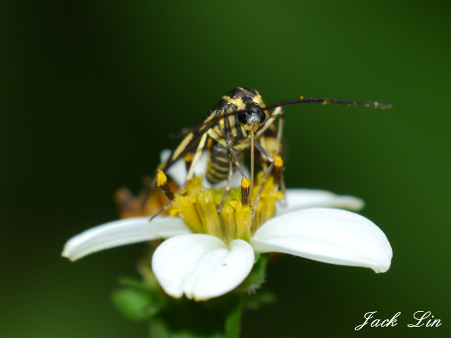 雌蟲胸部有黑黃條紋,腹部尾端沒有白色。