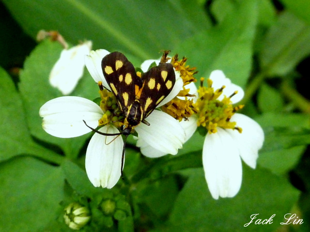 路邊的咸豐草和肉穗牡丹上常常有像是小蜜蜂的飛蟲採食花蜜,
