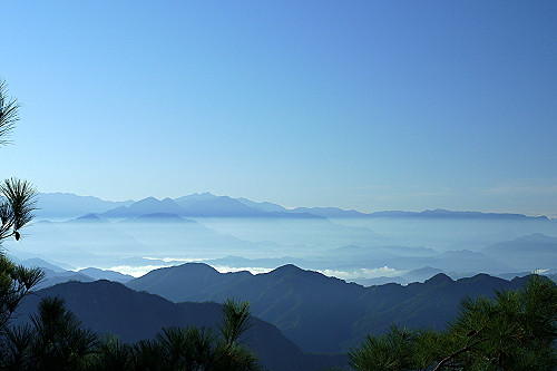 27K停車場早上7點的遠山,籠罩在一片薄霧中,格外飄逸出塵。
