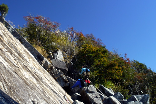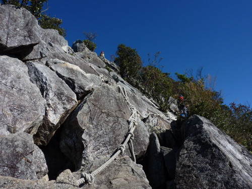 俗話說上山容易下山難,下鳶嘴山的路途仍舊是岩壁陡坡,