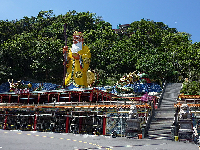 南山福德宮前處理的巨大土地公塑像,遠在國道3號上就可以看到。